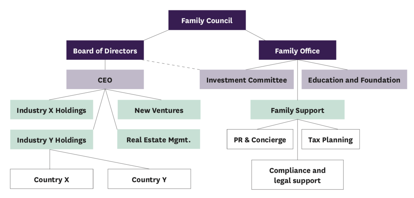 The example in Figure 1 contains a possible structure to reflect the interdependence amongst the three primary governing entities. The FO is a very broad concept implemented differently by each family, yet most have asset management as their core purpose, which is why a solid Investment Committee institution is central to the FB organization. There is no single solution for all, but often one’s experience can help others find their own way. I have seen highly successful FBs that have dysfunctional FOs and vice versa. Do not let this discourage you, take the opportunity to use the structure of the stronger one to rethink and rebuild the weaker one. To transcend over time and serve as good stewards to the wealth of our descendants, having well defined roles and well regulated FB and FO are aspirations all families should strive for.